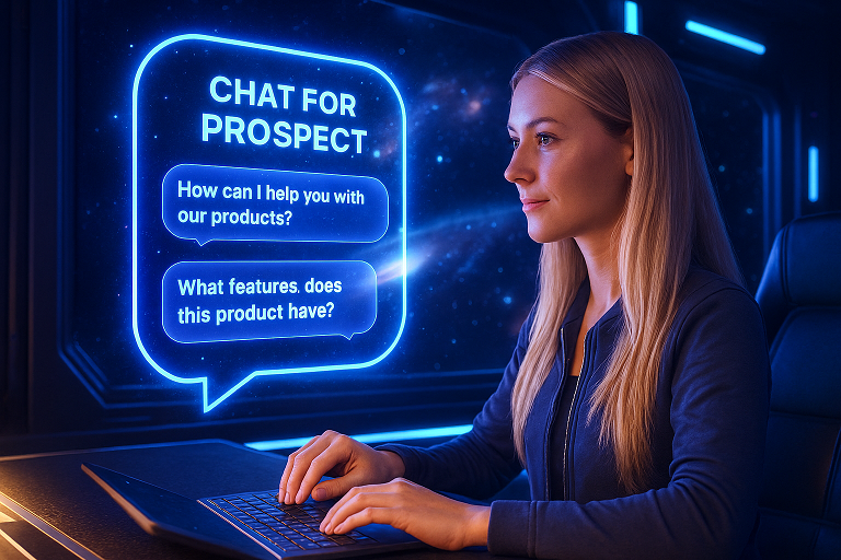 Sur votre site web nous intégrons un "chat" pour vos prospects, qui à été formé sur tous vos produits et arguments commerciaux pour valoriser votre plus-value et donner envie d'acheter ou de vous contacter